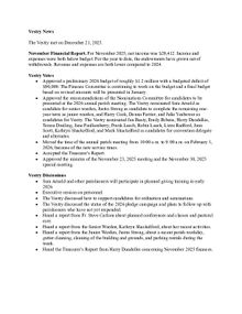 • Heard the Treasurer’s Report from Harry Dandelles concerning November 2025 finances.